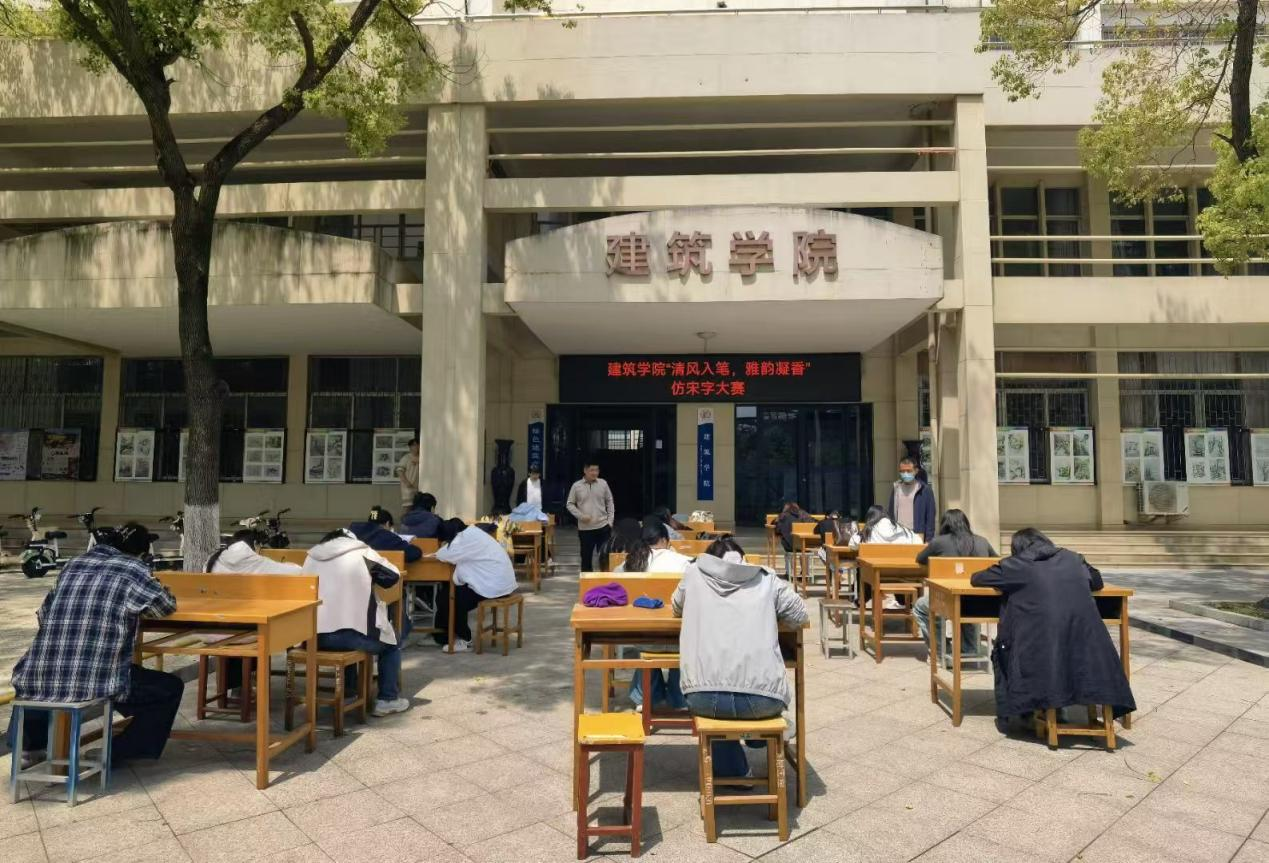 本网讯(学生记者/陈越)为夯实专业绘图基础,传承汉字书写之美,4月24日,建筑学院2026年“清风入笔,雅韵凝香”仿宋字大赛在7教楼前广场顺利举办。本次大赛面向建筑学院各年级学生开放,经过初赛的层层选拔,脱颖而出的优秀选手齐聚复赛现场,以笔为媒,在横平竖直间锤炼匠心,在笔墨书香中涵养正气。