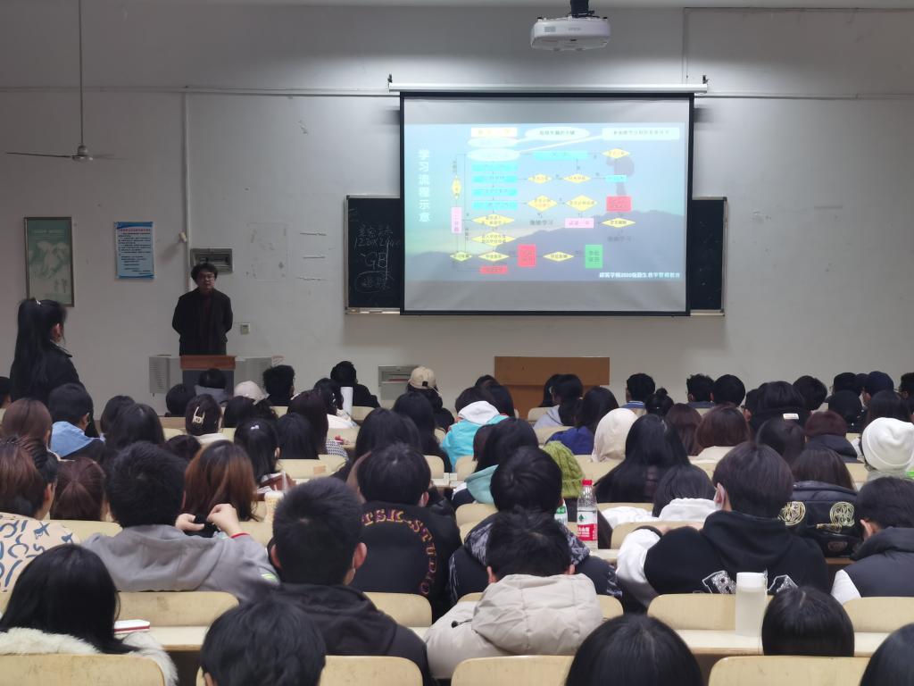 杨帆老师从专业学习概述、课程问题、学位授予三方面向同学们讲述了关于选课、考核、学籍处理(学业警告)、查成绩、评教、重修等相关规章制度。并围绕双学位申请的相关事宜,就其具体要求为同学们展开了详细讲解。