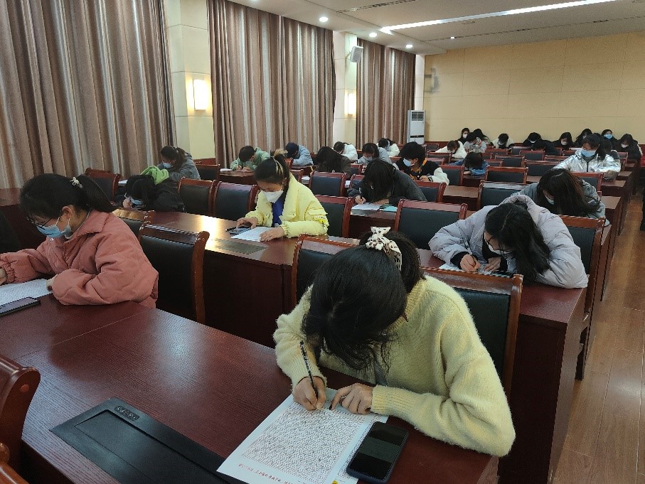 本次比赛以《中国共产主义青年团章程》中第八章节“团旗、团徽、团歌”为规定书写内容。比赛现场,参赛选手各个凝神聚气,心无旁骛,争分夺秒又有条不紊,经过充分的赛前准备,每位同学都充分展现了自身的仿宋字书写技能和闪亮风采,所写作品也各有特色,或端庄隽秀,或干净利落,或飘逸潇洒,令人赏心悦目。