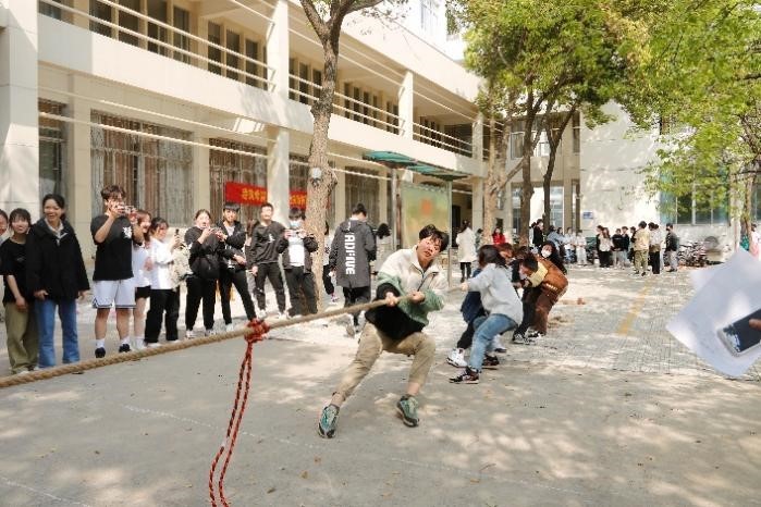 本网讯(学生记者/李亚鹏)为加强我院学生会各部门间的联系,提升学生会成员的综合素质和团队协作能力,4月3日下午,我院第二届学生会素质拓展运动会于7号教学楼楼前举行。