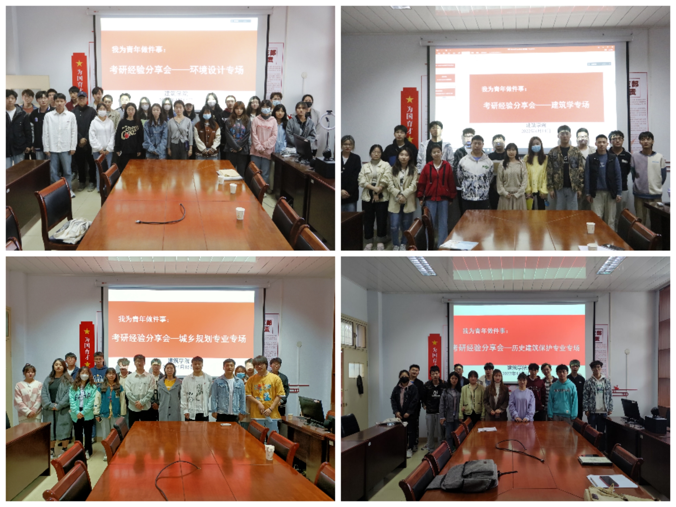 本网讯(特约记者/田真 学生记者/李亚鹏)为帮助学生树立正确的考研观,扫除考研知识盲区,掌握科学有效的备考方法,4月14日-17日,建筑学院分别针对环境设计、建筑学、城乡规划和历史建筑保护工程四个专业开展了考研经验系列分享会,特邀学院考研成功的2022届毕业生到会分享经验,有考研意向的同学们与会聆听。