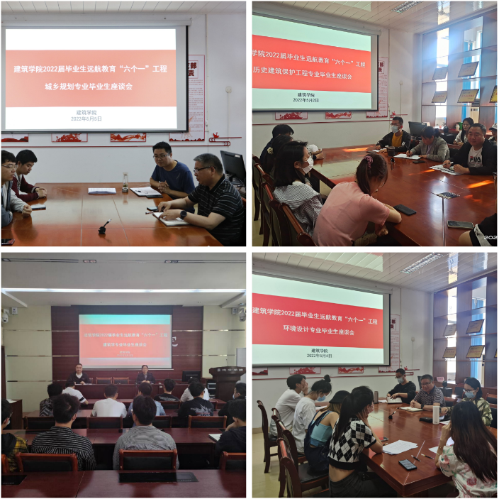 本网讯(特约记者/田真)5月2日-5日,建筑学院2022届毕业生远航教育“六个一”工程系列座谈会在7教101、106会议室分专业依次举行。学院领导班子、相关专业教研室负责人、2022届毕业生辅导员及毕业生代表参会。