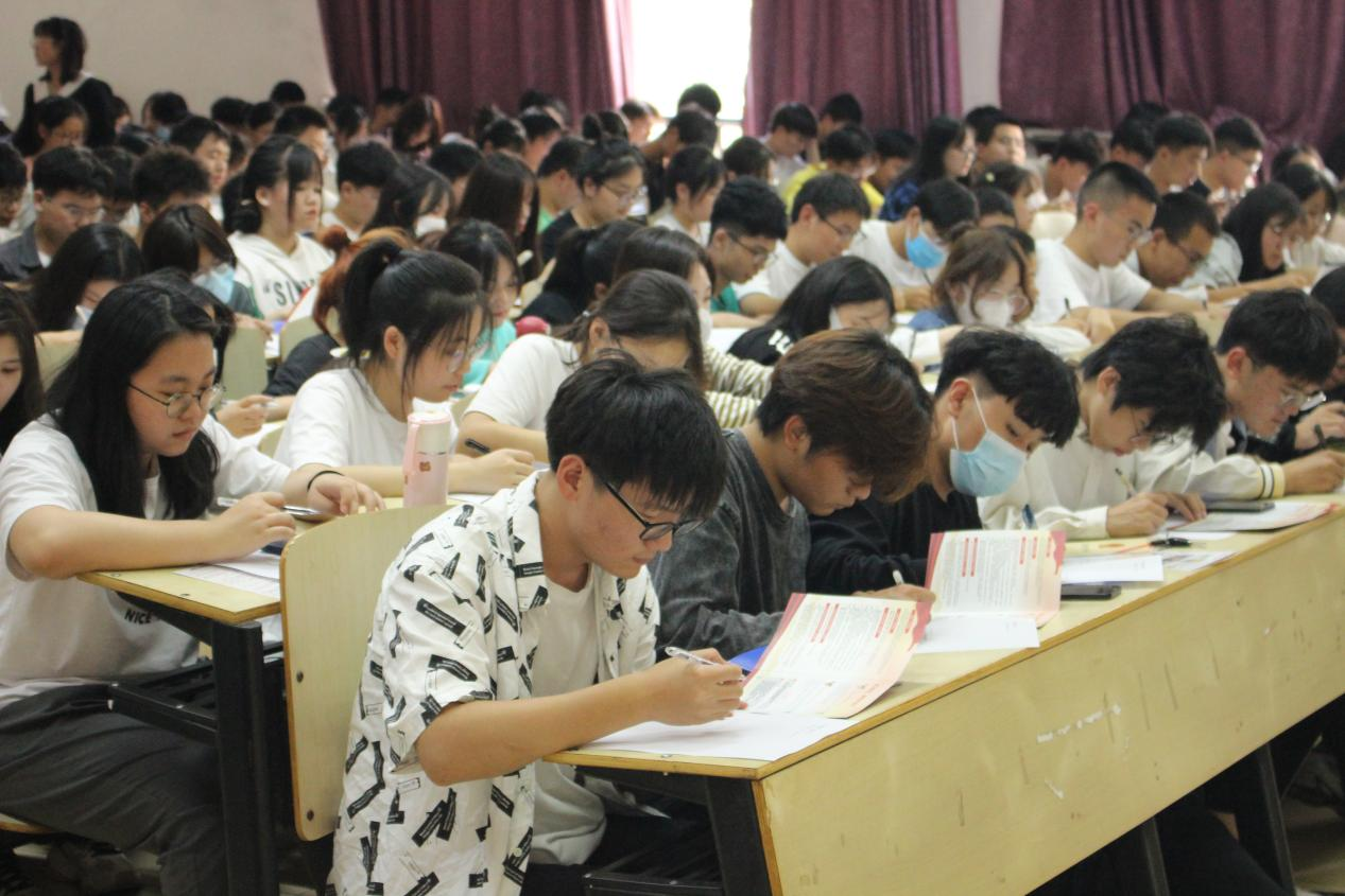 随后,全体新生进行了大学生中国特色社会主义民族宗教理论考试。考试采用开卷方式,同学们认真书写试卷,全程安静有序,期间李明东老师特别强调了两个“不得”和五个“严禁”,同学们不仅写在了纸上也牢记于心中。