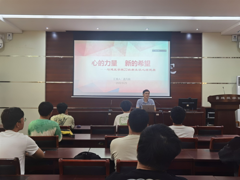 本网讯(特约记者/田真 学生记者/王晨)为增强同学们对心理健康问题的重视,积极应对大学期间可能遇到的各种心理压力,9月29晚,建筑学院特邀我校心理健康教育中心孟凡锐老师为2022级新生做“心的力量 新的希望”心理健康专题讲座。