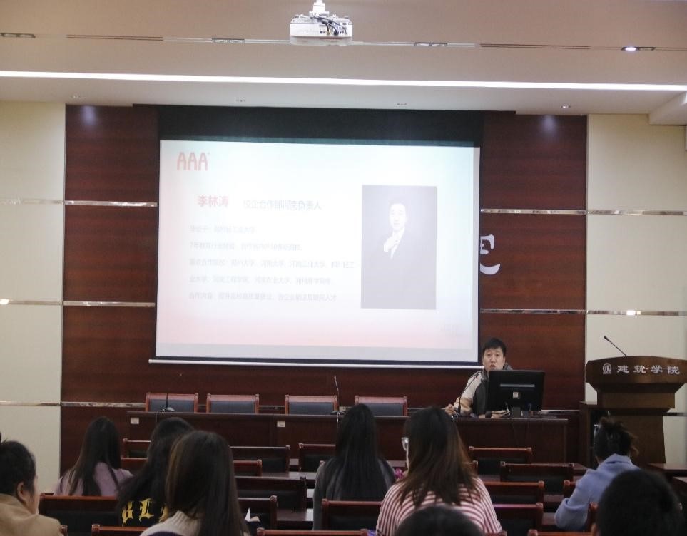 本网讯(学生记者/李春甫)10月26日下午,AAA数字艺术郑州中心公司宣讲会在七教106召开,校企合作部河南分区负责人李林涛担任主讲。部分19级环境设计专业学生到场参加。