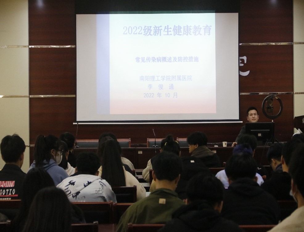 本网讯(学生记者/王晨)11月5日,建筑学院于七教106举办秋冬季传染病防治知识讲座。本次讲座由南阳理工学院校医院李俊通医生主讲,全体22级新生参加。根据疫情防控需要,讲座采用线上线下结合的方式进行。