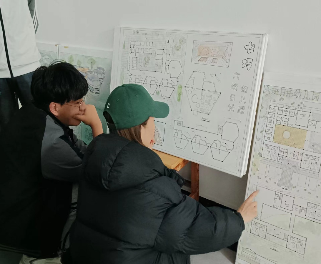 活动现场,同学们围绕自己的作品讲解设计思路,评图教师从建筑环境设计、建筑图纸规范性、建筑表现等方面进行了详细的点评指导,并针对同学们在设计过程中遇到的困境和问题,提出了相应的修改建议。整个评图过程有序进行,学习氛围浓厚,每位同学的设计图纸都获得了老师的细致批改和指正。同学们纷纷表示,在观摩学习其他同学的设计方案时,可以学到很多东西,找出自己的不足之处,查漏补缺,进一步激发了专业学习的积极性。
