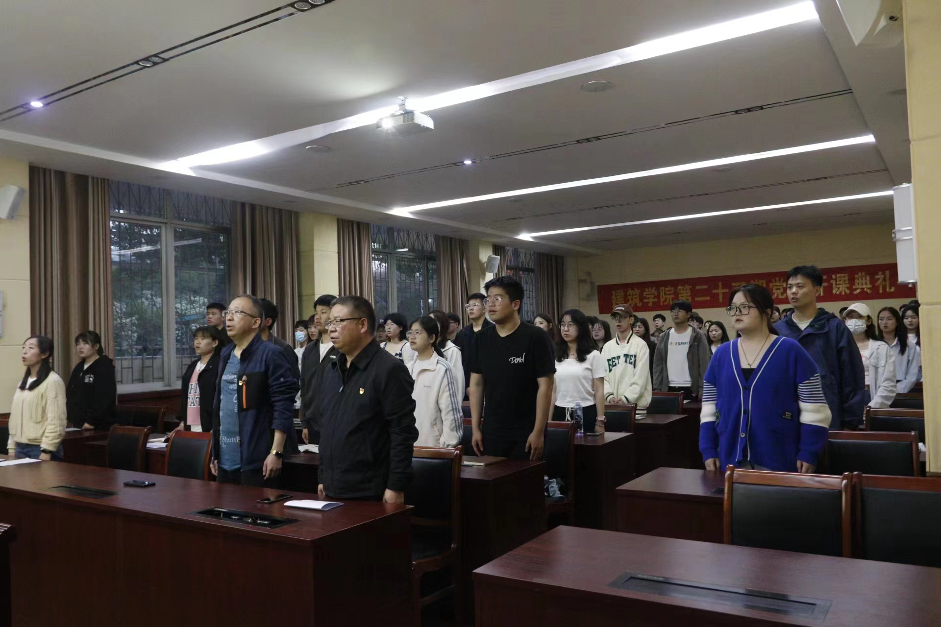 在庄严的国歌声中,典礼拉开帷幕。田光辉书记对本期学员提出了两点要求:一是要树立正确的入党动机,充分发挥模范带头作用;二是要端正学习态度,认真完成培训班的课程和任务。