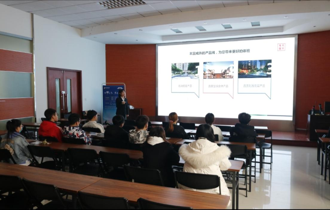 宣讲会上,黄女士通过播放PPT的方式向同学们介绍了“东青在河南”“东青文化”等相关情况,以便让同学们更好了解东青集团的历史。随后,黄女士展示了东青集团丰富有序的产品线和高质量高标准的产品,并着重强调:东青集团旨在专注品质新生活,本着“品质第一、精益求精”的产品观以及品质与诚信、超越与共赢共存的价值观,为顾客带来更好的新体验。在最后的交流讨论环节中,黄女士结合实例一一为同学们答疑解惑,获得了同学们的一致好评。