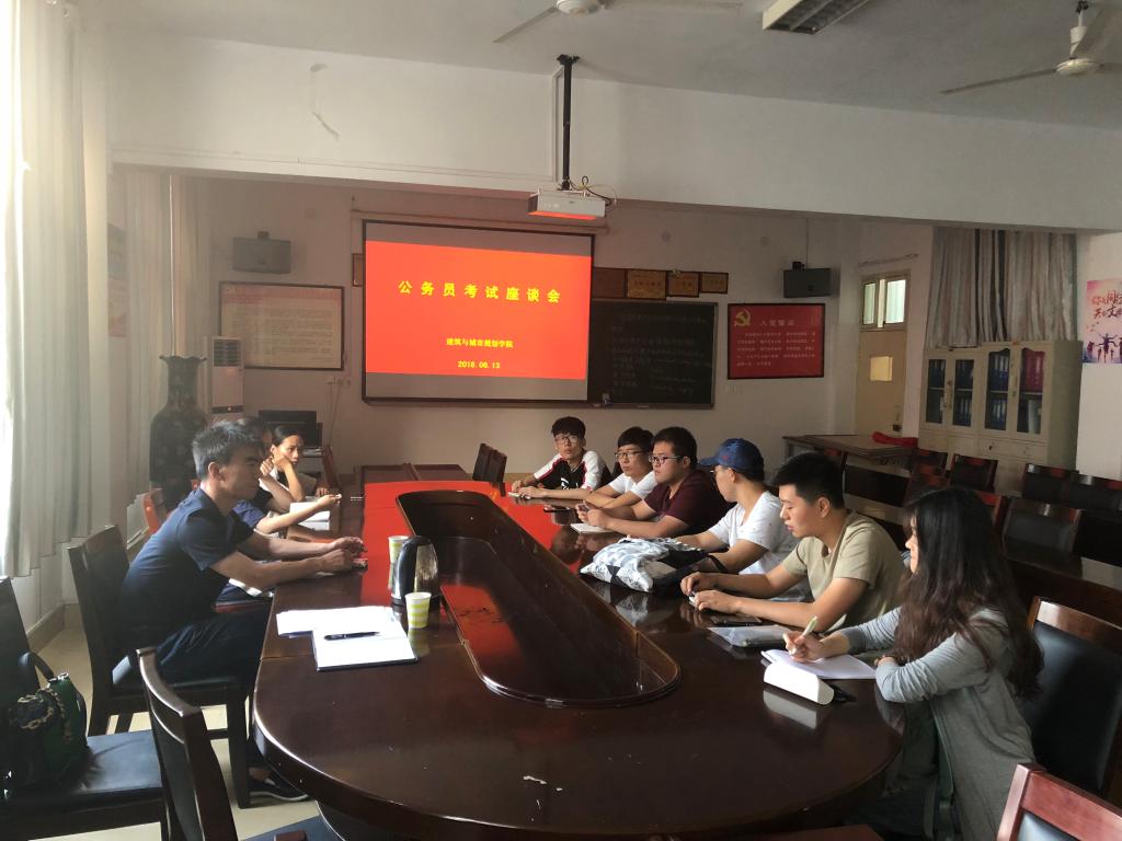 2018年6月13日,建筑与城市规划学院举办公务员考试答疑培训座谈会,邀请到了知名公务员考试培训专家马继彬到学院对公考感兴趣的同学进行座谈培训。
