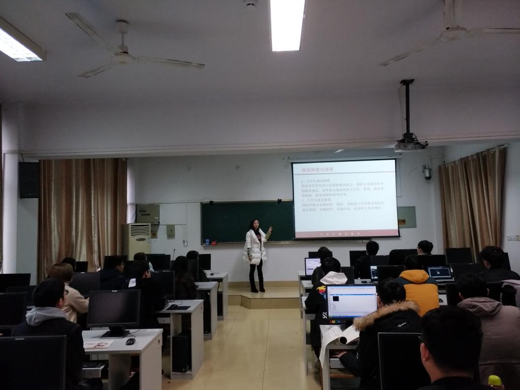 为更好地宣传大学生就业创业优惠政策,促进大学生更好地了解就业程序,顺利就业。12月21日,我院在13#412机房为2018届毕业生进行就业政策和就业程序宣讲,主讲人是我院辅导员杨菲。2018届毕业生参加本次宣讲会。