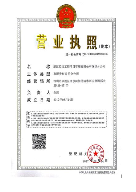 浙江经纬工程项目管理有限公司深圳分公司(备注:该分公司也是我们注册的分公司,我们两个公司资质都要在用)