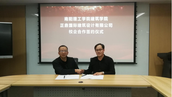交流会后,学院与2001级校友祝福所创办的正鼎国际建筑有限公司签订了校企合作协议。