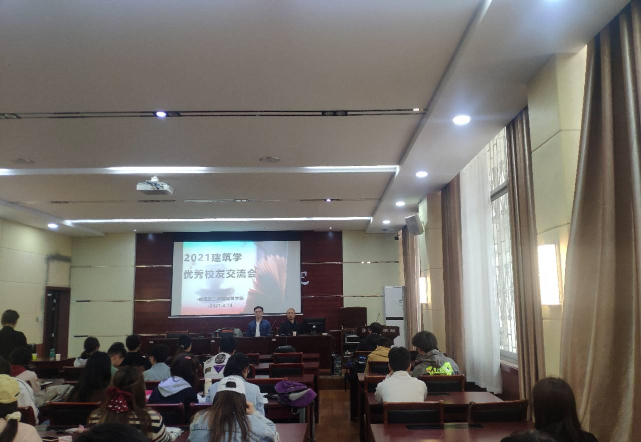 (通讯员 费佳欢)4月14日下午,建筑学院在7教106举办了建筑学优秀校友交流会,07级校友徐龙伟和朱随亮受邀出席并同在校学子分享经验,交流思想。