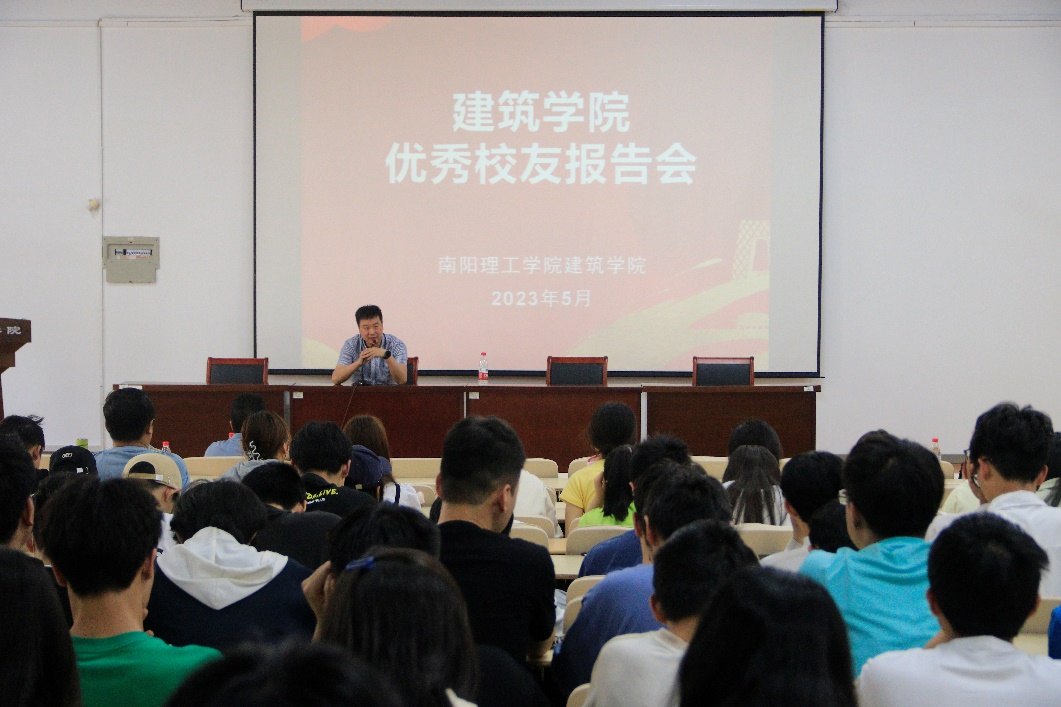 本网讯(学生记者/贾欣豪)为使在校生更加了解自己的专业,增强专业归属感,5月19日,建筑学院举办优秀校友报告会,特邀我院优秀毕业生蒋策安、王勤书、何鲜明、姚士超四人出席。全体建筑学学生到场参加。