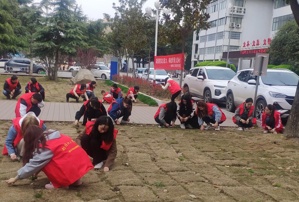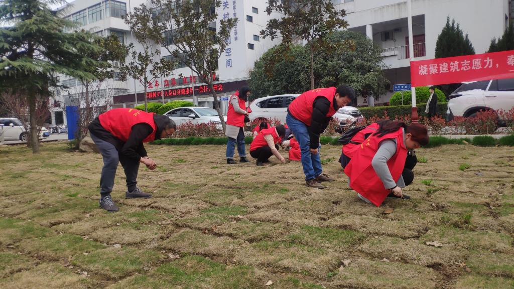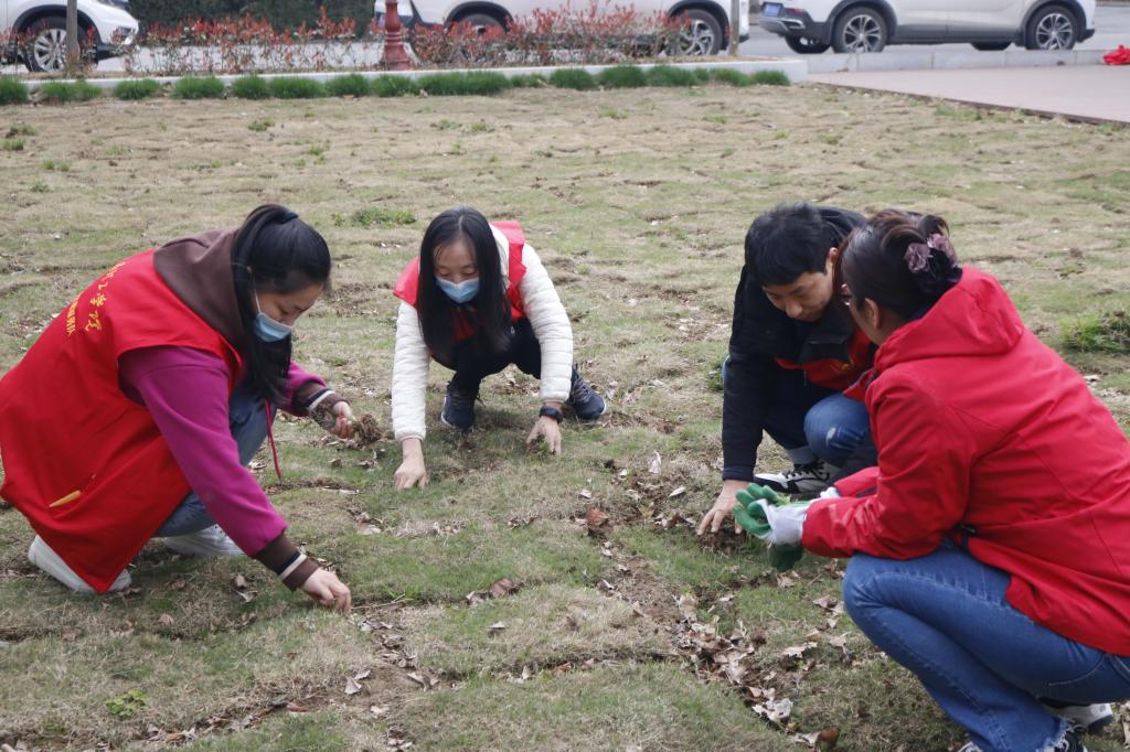 在活动负责人的指导下,大家互相配合,不怕脏累,对每一块草坪进行精心养护,确保彻底清除杂草,清理一处,靓丽一处。