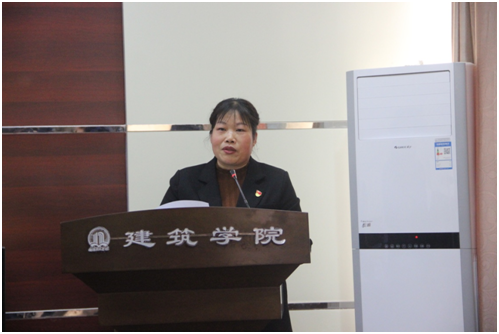院长谭征作了以“坚定信心铆足干劲 强化担当勇毅前行 奋力开启建筑学院内涵式发展新征程”为题的院长工作报告。报告中,她回顾了学院2021年度在党的建设、教学工作、实验室管理、人才和国际交流、就业创业、学生工作、科研及社会服务等方面取得的成果,思考了学院发展现存的主要问题。她表示,今年是党的二十大召开之年,是学校实施“十四五”规划关键之年,是“观念能力作风建设”活动之年,是省重点硕士立项单位建设攻坚之年。学院将继续坚持“稳中求进、进中突破”工作总基调,守正创新增动力、转变作风提能力、攻坚突破晋实力、推进改革激活力,以实际行动和优异成绩迎接党的二十大胜利召开。