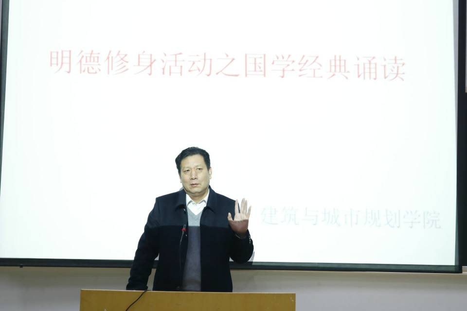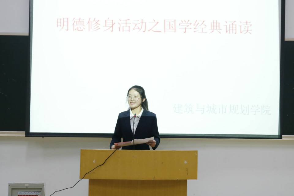 11月15日晚,建筑与城市规划学院在7教201成功举办“明德修身活动之国学经典诵读”比赛。党委书记陈博出席了此次比赛,18级全体同学参与活动。