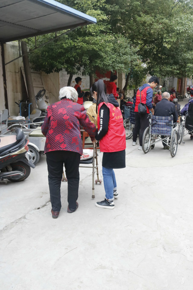 到达活动地点后,负责人向志愿者讲解了服务注意事项,随后,同学们便开始了志愿服务。有的同学跟老人们聊天、打扑克、下象棋,有的同学则是主动打扫卫生、帮老奶奶搬凳子,搀扶着老人散步。志愿者们还精心准备了节目,并尽自己的全力,让老人们感到温暖与幸福。一个老爷爷讲到,“大学生是祖国的花朵,民族的希望”,讲到动情处,更是高歌一曲——《五星红旗》,在极具感染力的歌词的带动下,所有人都情不自禁地加入了合唱。活动最后,志愿者们与老人进行了合照,在依依不舍的告别之后,本次活动到此圆满结束。