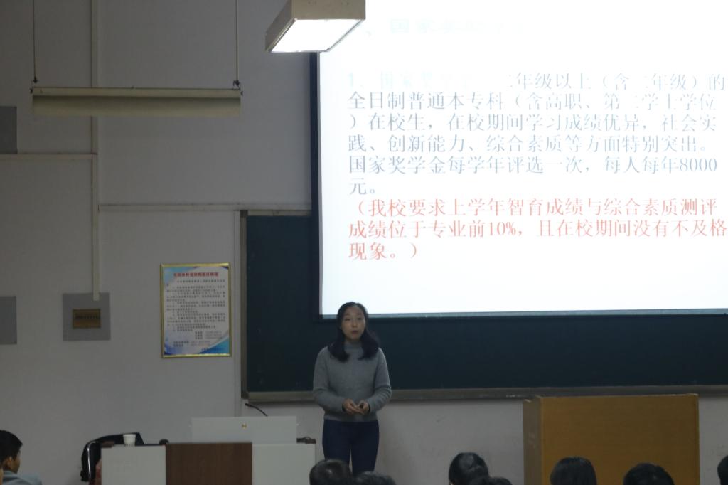 宣讲会由学院资助专干杨菲老师主讲,她首先强调了资助工作的重要意义,高校资助工作是促进教育公平的重要举措,接着主要围绕国家奖学金、国家励志奖学金、国家助学金的申请条件、审核流程、材料提供、公示上报等内容展开,同时重点宣传讲了国家和我省建档立卡相关政策,教育引导家庭经济困难学生要自强自立、讲求诚信、学会感恩,用自己的实际行动和优异成绩回报国家和学校。随后重点针对生源地贷款和校园地贷款进行区分,从申请条件、申请流程、还款渠道和还款政策做了详细解读,教育大家要诚信贷款、诚信还款、诚信做人。