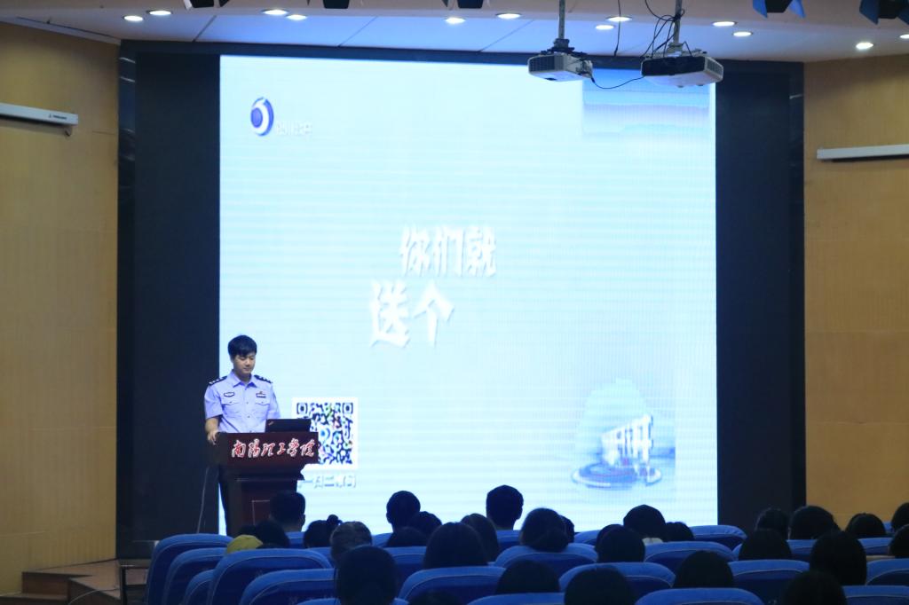 活动伊始,主讲人付聪警官风趣地做了自我介绍。接着以“身边有没有电信诈骗”这一问题开场,并举以较为著名的几个案例告诉大家电信诈骗距离我们并不遥远,同学们必须加以防范。之后,付警官对骗子常见的作案手段及应对措施做出讲解,并强调宣传防范是应对诈骗最有效的方法。付警官着重讲解了“淘宝刷单”这一与同学们相距最近的骗局。骗子给人蝇头小利,最后圈钱走人,无处可找,被害人悔不当初。我们万不可再上当了。最后,付警官告诫同学们远离“校园贷”一类的贷款,合理消费,不要让自己后悔莫及。