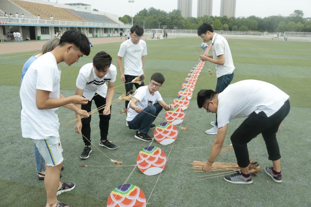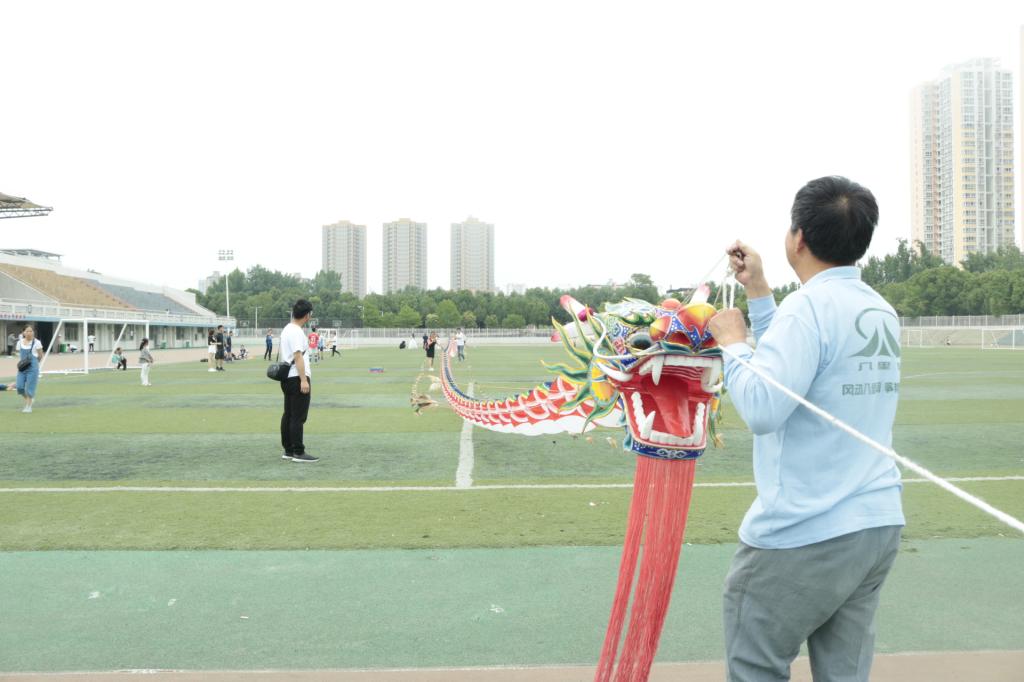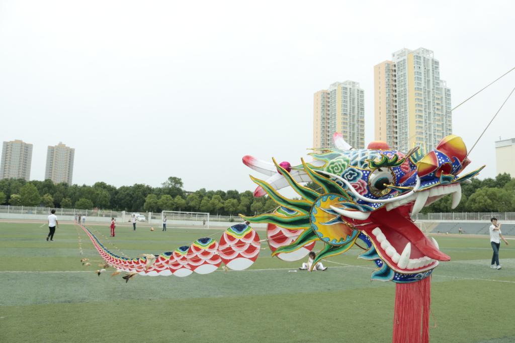 闫永俊给现场的师生们普及了放风筝的有关知识,并教授绑风筝线的方法,在老师的指导和帮助下,大家的风筝都飞起来。本次活动中最吸引眼球的是闫老先生自制的九十米长的“龙风筝”,在同学们的协助下,成功飞上了空中,它宛如一条活灵活现的真龙。空中伴随的是其他各式各样的小风筝,它们翩翩起舞,有如会飞的燕子,有的如跳跃的音符,操场上一片欢声笑语。本次活动在合影留念中顺利结束。