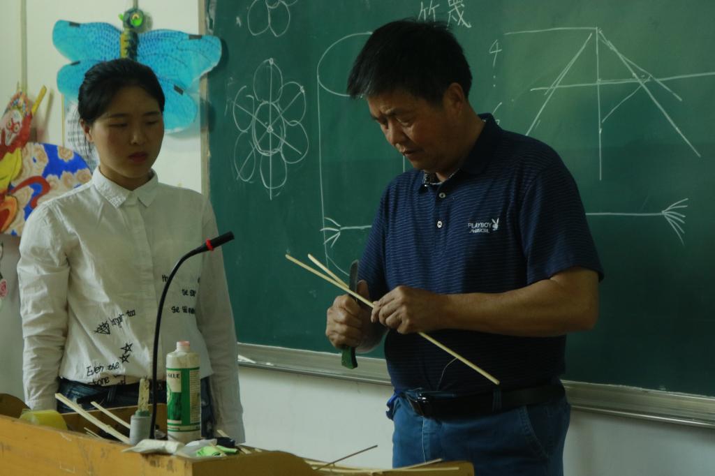讲座共分为自我介绍、35年的心路历程、现场教学制作风筝三个部分。闫永俊讲述了自己从儿童时期就开始接触风筝,当时风筝比较简朴,都是身边随处可见之物,甚至风筝线都来自于手套和袜子。近年来风筝的种类和花样越来越多,在传统风筝造型上进行大胆改进,从动物和人物形象的造型到龙形风筝,体现着勇于创造的创新精神。随后带领师生现场进行风筝骨架的搭建,它的骨架结构讲究对称平衡,需选用牢固不易折断的上等竹条,详细绘画了风筝骨架的制作流程,并现场进行骨架的制作流程和方法。社员薛邻惠表示:“我们不仅了解了风筝制作的步骤,同时了解了风筝图案的不同涵义,它还融合了群众的欣赏习惯,反映人们善良健康的思想感情,渗透着我国民族传统和民间习俗,值得学习研究”。