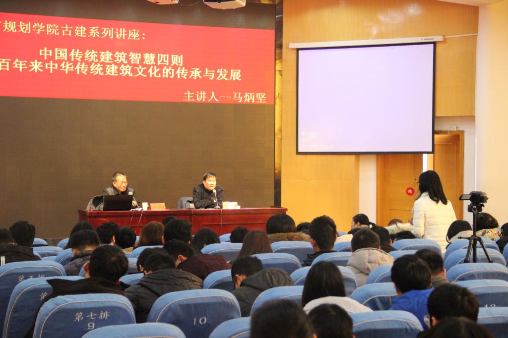 中国勘察设计协会传统建筑分会会长、《古建园林技术》杂志主编,著名古建筑专家马炳坚先生于12月19日在领创空间二楼报告厅作题为“中国传统建筑智慧四则”和“近百年来中华传统建筑文化的传承与发展”的学术讲座。我院院长张建文、副院长谭征、张辉出席,学院相关专业师生聆听了此次报告。讲座由中国圆明园学会秘书长宋国晓教授主持。