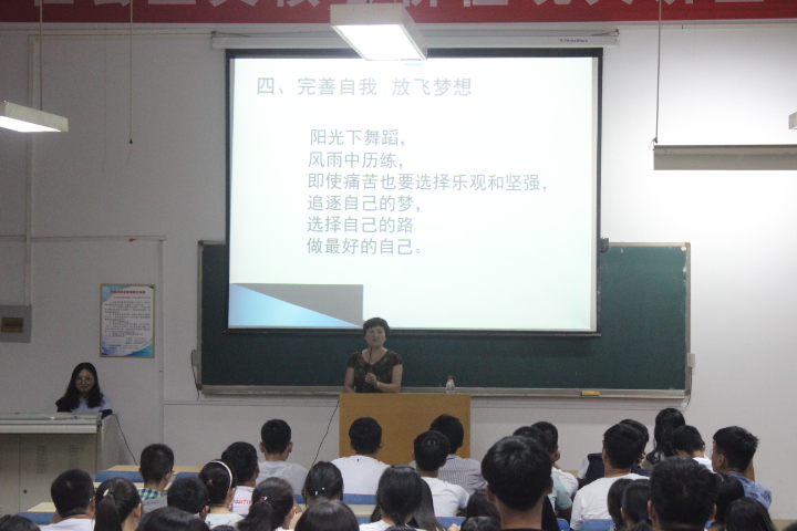 张院长首先详细讲述了我校创建、发展、转型等各阶段过程,深刻阐述了体现在众多的南工人身上“不甘示弱”的精神,讲述了我院在专业设置、教研设备、就业考研等方面的发展建设情况,同时介绍了我院在大学生创新创业、全国大学生学科竞赛等方面取得的重大成果。其次,张院长结合我院学科特点,引导合理规划学习时间,力求在大学的几年里有所作为,同时,她殷切期望新生们为大学生活立定目标并为之做出独立的思考以及详细的规划。她教导大家说:“在学习上,我们除了要认真学习本专业知识,还要努力拓宽自己的视野,广泛涉猎,在生活上,我们要学会宽容待人,乐观对事”。最后,张院长围绕“完善自我,放飞梦想”这一主题,讲述了美德对于当代大学生完善自我的重要性,要求新生们坚定信念,在平时的生活和学习中要注意自身的文化修养与人格塑造,做一名合格的当代大学生。