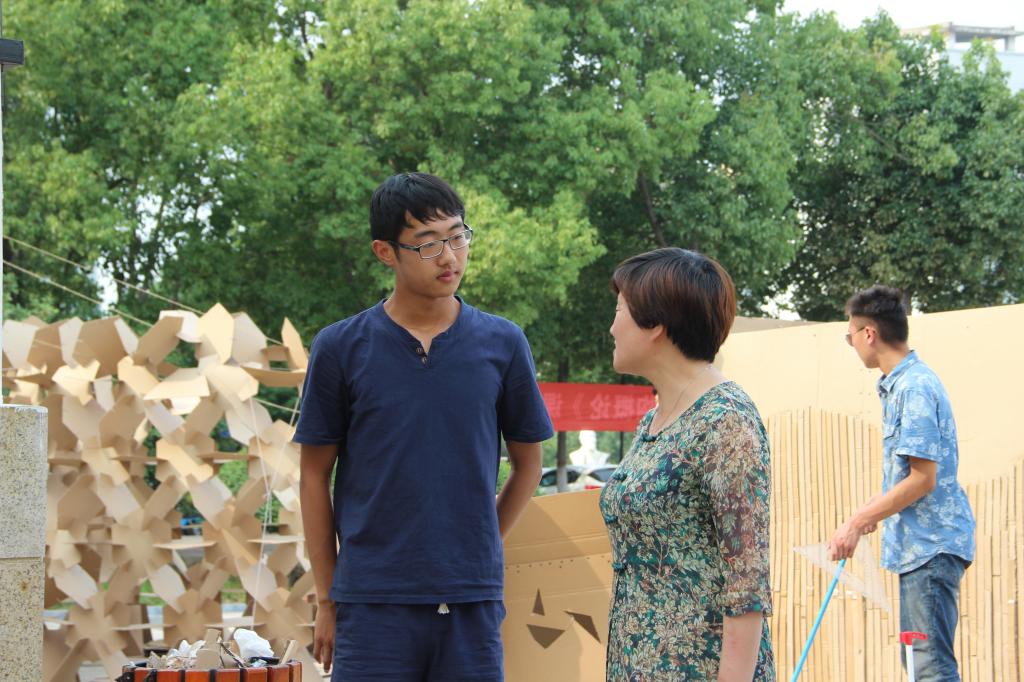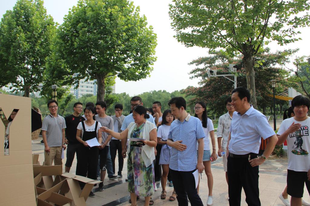 参加今年成果展览23支代表队分别来自我院16级各个专业,参赛队从6月18起开始在广场上搭建,经过2天的的辛苦、紧张、快乐的建造,23栋各具特点的纸板房在广场上矗立起来。院领导与参加建造节的同学们亲切交谈,对他们搭建的空间成果进行肯定并讲评其中的优劣,专业课教师们也也逐个对模型进行点评,学生们在现场向评委们介绍了创作的灵感来源、空间意义等,学生们丰富的想象力和不惧炎热团结一致的精神也获得了老师们的一致好评。