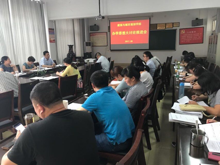 6月13日下午3点,建筑与城市规划学院召开“办学思想大讨论推进会”和“贯彻落实思想政治工作会议”,学院领导班子及全体教工参加。