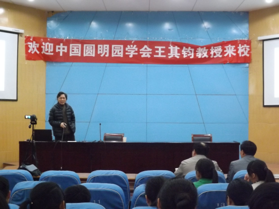 在中国圆明园学会——古建园林分会与建筑与城市规划学院联合办学的背景下,中国圆明园学会王其钧教授于4月14日应邀来我校讲学,在图书馆二楼报告厅作了题目为《中国古代建筑艺术》的讲座,南阳市文物局局长郝玉建、南阳市古代建筑保护研究所副所长贾付军、北京国文琰文化遗产保护中心总工程师薛玉宝,我校相关专业师生及校外人士聆听了此次讲座。讲座由中国圆明园学会秘书长宋国晓教授主持。
