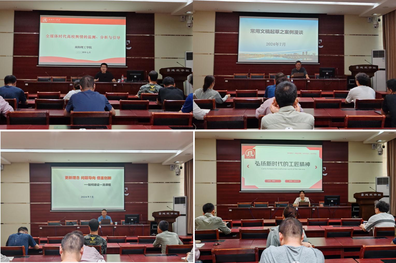 本次培训班还邀请了校党政办公室主任冯传亭、教务处副处长刘尚争、校党委宣传部信息管理科科长刘庚等5位同志,围绕《全媒体时代高校舆情的应对与处置》《常用文稿起草之案例漫谈》《如何拍摄公务活动》《如何建设一流课程》《弘扬新时代的工匠精神》进行深入的讲解,有效提升了干部们的应急处理能力和业务水平,增强了公文写作能力和公务拍摄能力,以工匠精神开拓工作新思路与新方法,助力学院学科专业建设,为学院事业发展注入新的活力。