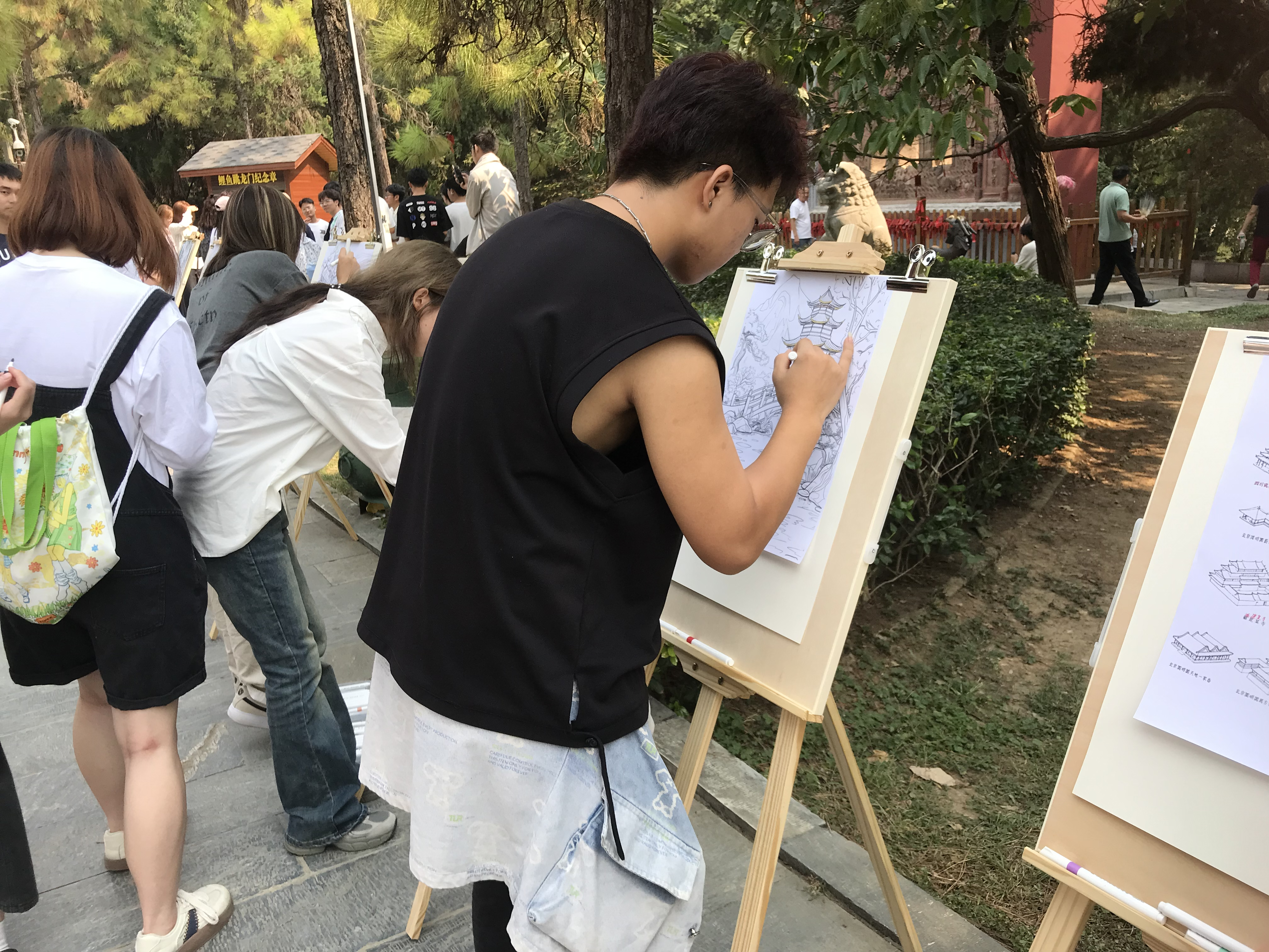 展览现场气氛热烈,市民和游客或是凝神观看,或是现场描摹,深深陶醉在古建筑的艺术海洋中。