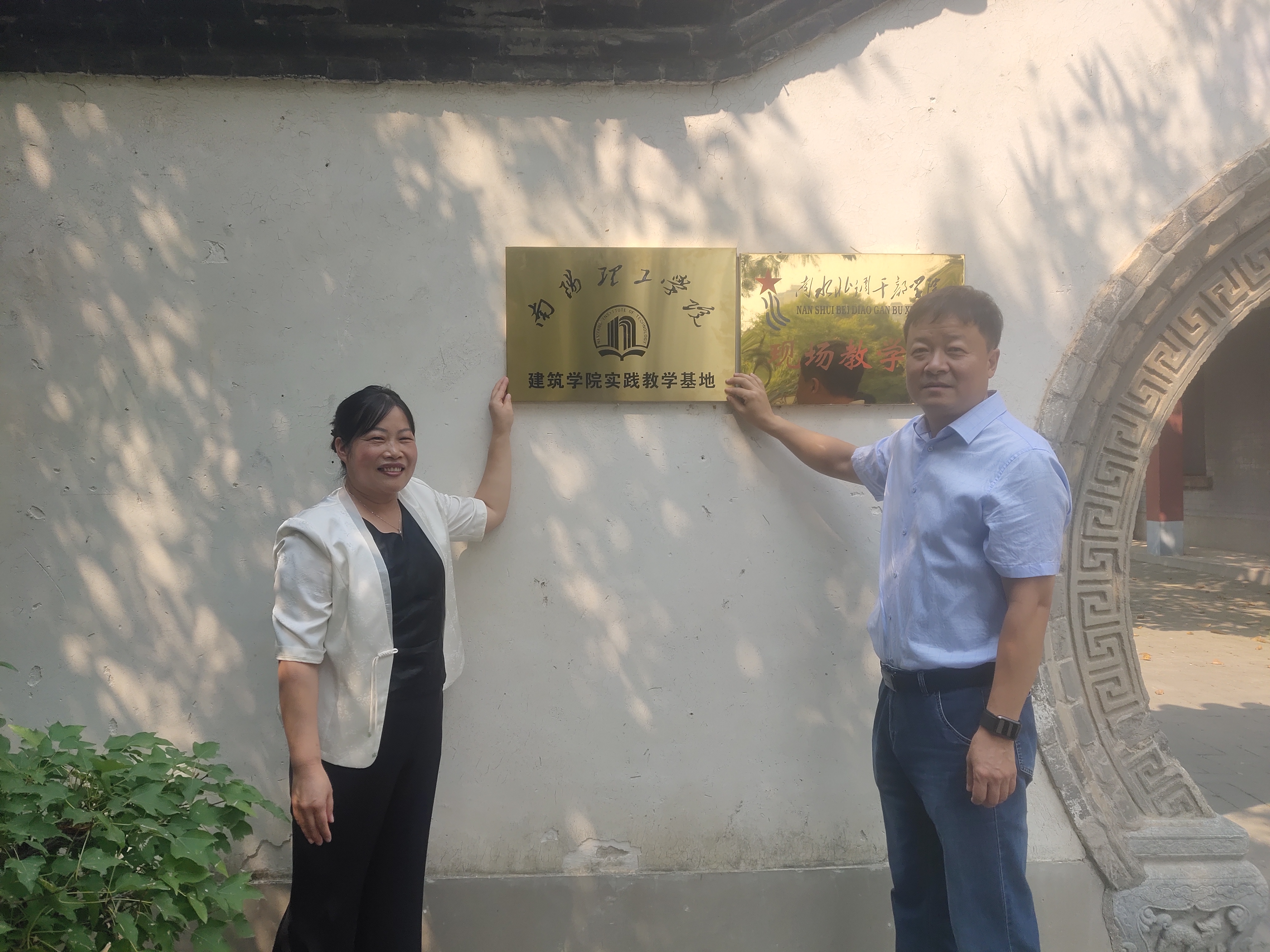 观展之后,谭征院长和王玉琛主任共同为武侯祠实践教学基地揭牌。谭征院长指出,学院将通过实践教学基地建设的合作模式,实现深度科教融合、协同育人新格局,共创双赢局面。王玉琛主任表示将全力保障并推进建筑学院在南阳武侯祠博物馆的实践教学基地建设,希望后续开展更多形式的合作,共同推进南阳市文物保护和文化传承工作。