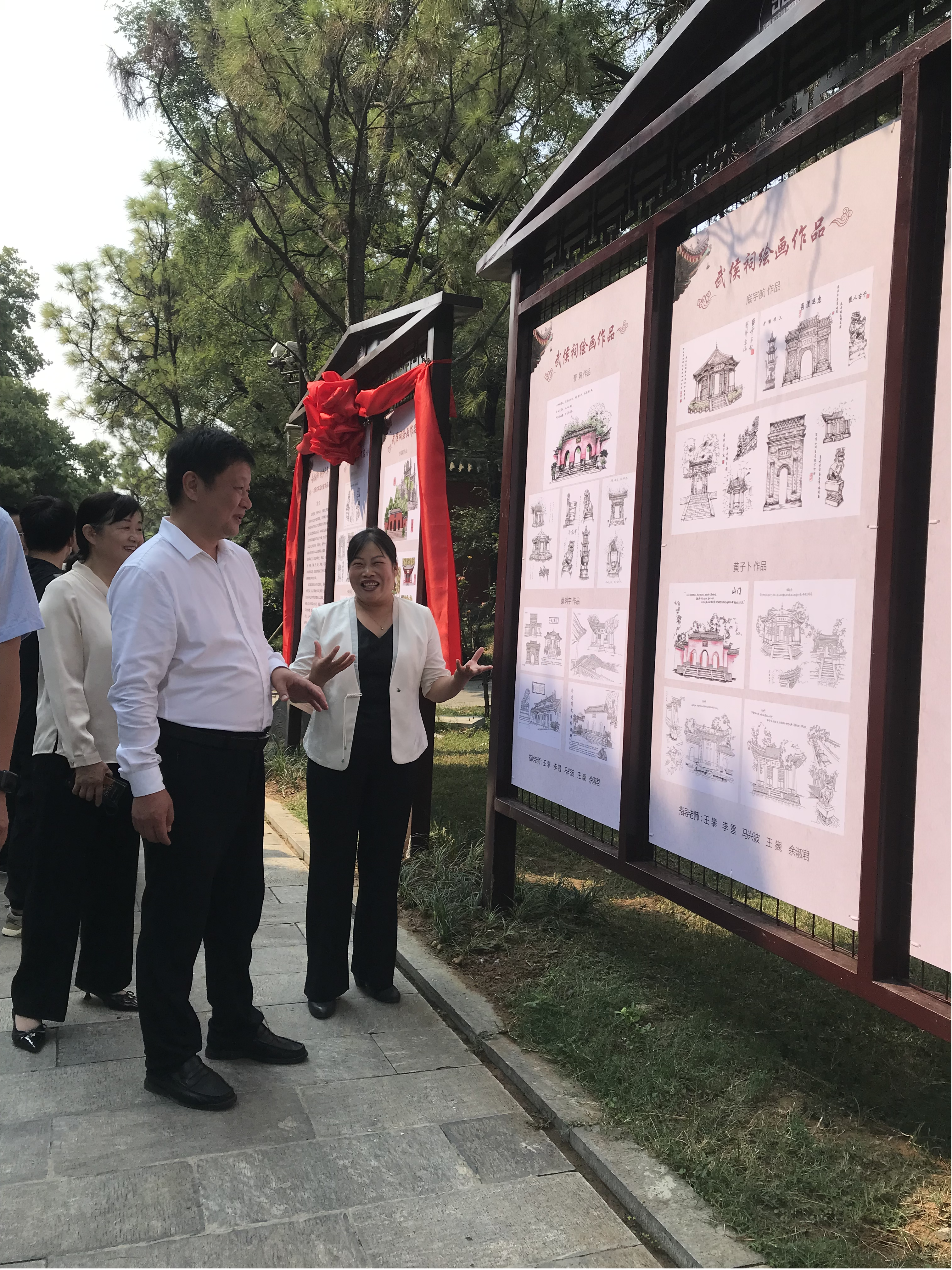 本网讯(记者/王巍)9月27日上午十点半,建筑学院院长谭征、南阳市文化广电和旅游局局长任永亮、武侯祠博物馆馆长王玉琛等领导出席在武侯祠举办的“古韵南阳 绘梦千年——南阳古建筑绘画作品展”开展仪式,并为展览揭幕。此次画展由建筑学院和武侯祠博物馆共同举办,建筑学教研室主任王巍博士及相关师生参加仪式。