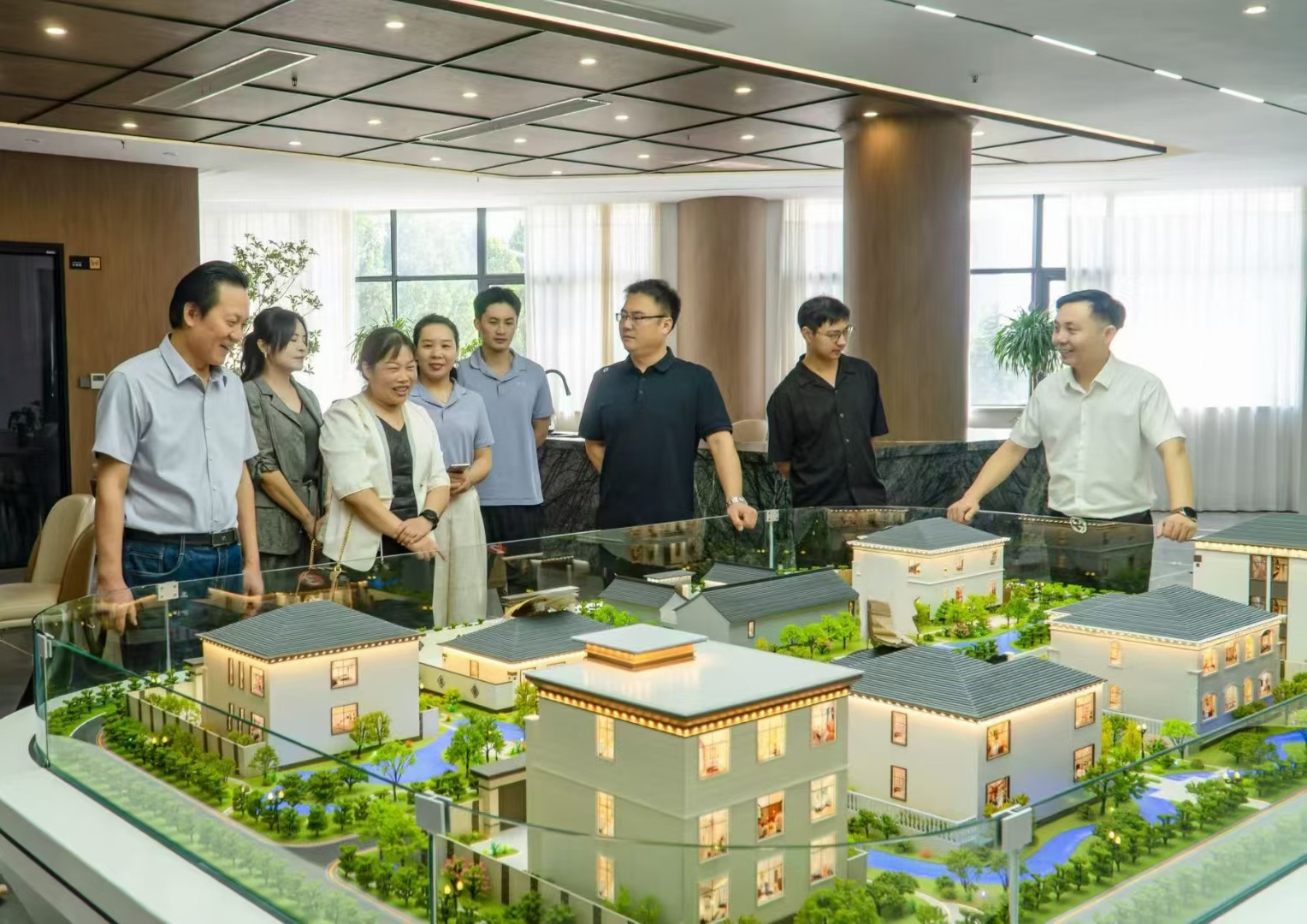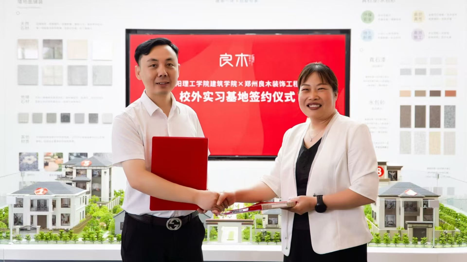郑州良木装饰工程有限公司总经理李春雨热情接待了谭征一行。在企业代表陪同下,建筑学院团队先后参观了两家企业的展厅与设计室,实地考察"建-配-装"系列设计成果,并详细了解企业发展历程、文化理念及业务特色。