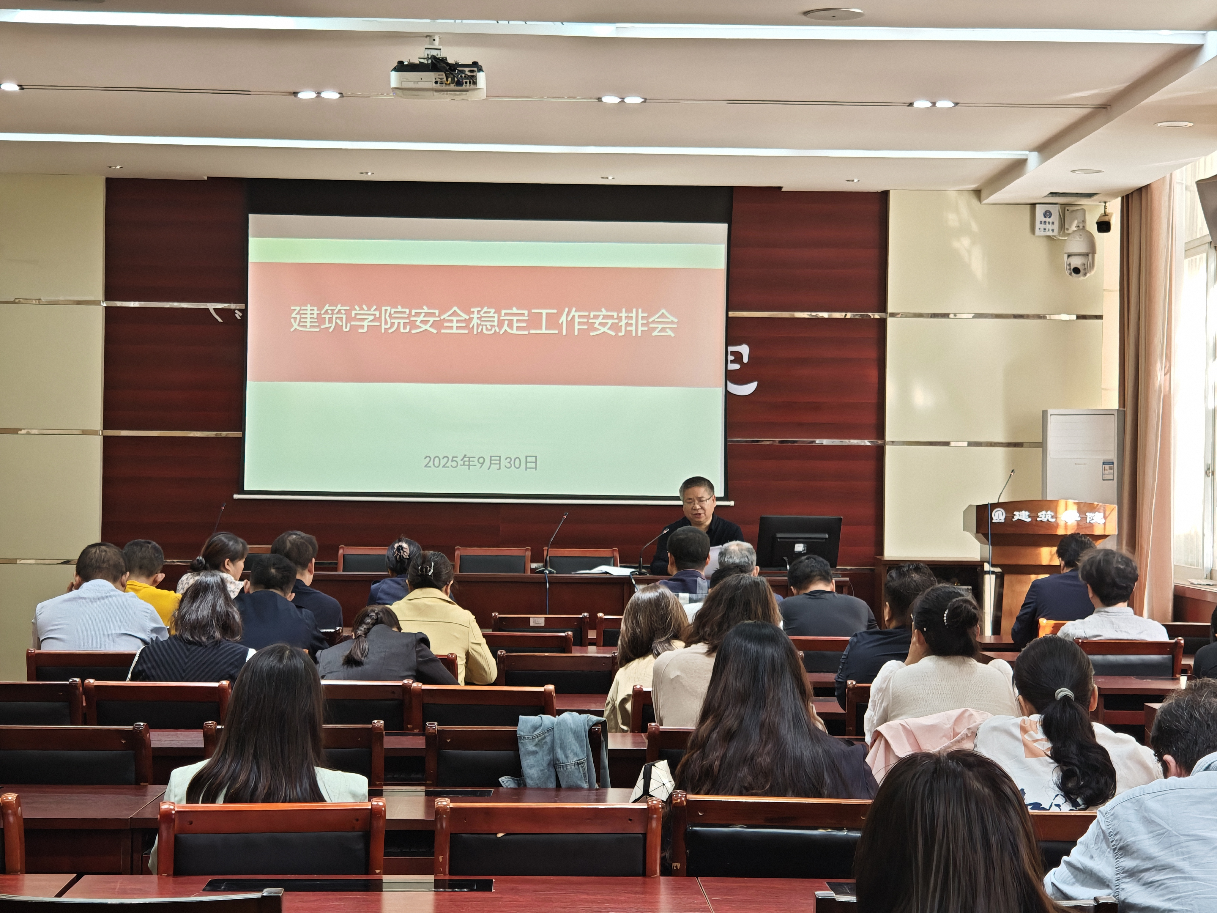 本网讯 为切实筑牢校园安全屏障,确保国庆、中秋“双节”期间校园安全稳定,9月30日下午,建筑学院在7号教学楼106多功能报告厅召开安全稳定工作安排会,同步启动“安全稳定月”系列活动。学院党委书记田光辉主持会议,全体教职工参加会议。