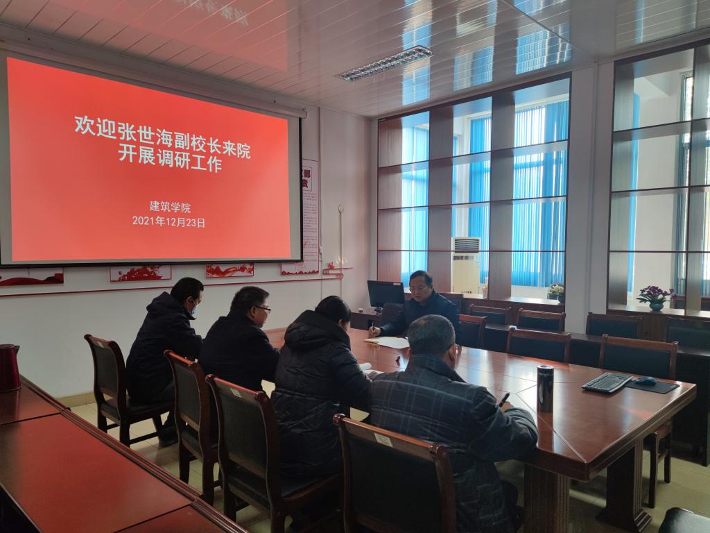 本网讯(特约记者/李东来)12月23日下午,副校长张世海赴建筑学院开展调研指导工作,学院领导班子参加。建筑学院党委书记田光辉、院长谭征首先就本学期学院党建、教学、科研和社会服务等工作的成绩和存在问题进行了汇报。