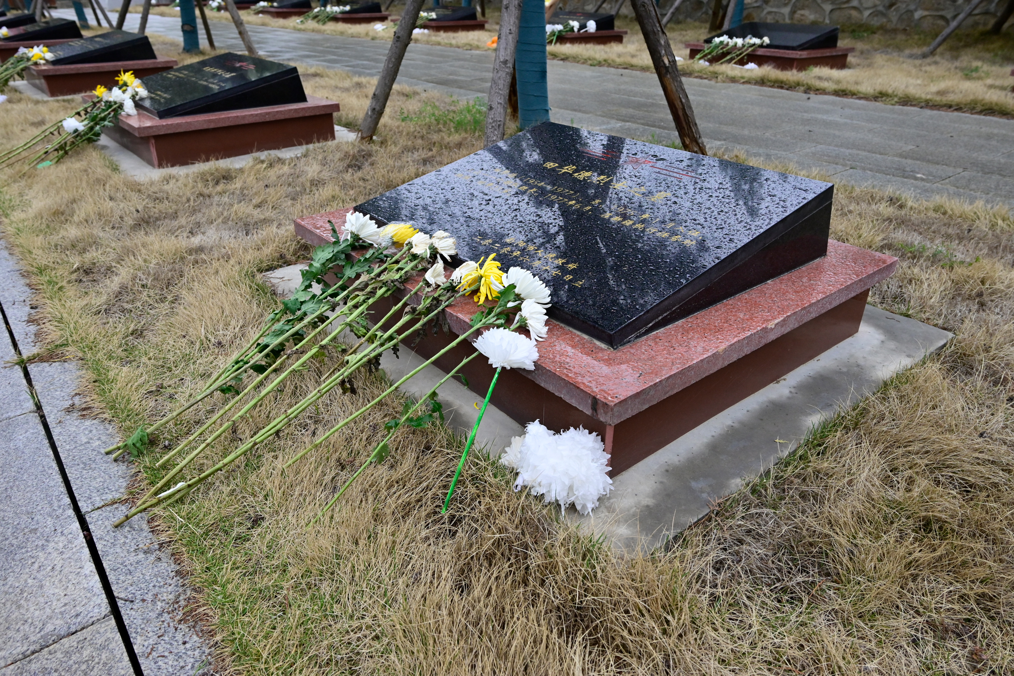 烈士公墓前,全体师生肃立默哀,向长眠于此的革命烈士敬献鲜花。
