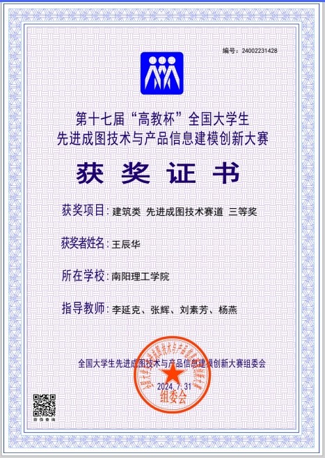 据悉,“高教杯”全国大学生先进成图技术与产品信息建模创新大赛是由原教育部高等学校工程图学课程教学指导委员会、中国图学学会制图技术专业委员会和中国图学学会产品信息建模专业委员会联合主办的图学类课程最高级别的国家级赛事,2018年被中国高等教育学会列入全国普通高校学科竞赛排行榜。大赛以培养学生的工匠精神,激发学生的创新意识,探索图学的发展方向,创新成图载体的方法与手段为宗旨。