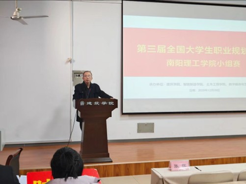 本网讯(学生记者/蒋自强)为深入贯彻“以赛促学、以赛促教、以赛促就”的就业育人理念,帮助学生树立正确的就业观,明确职业发展方向,12月9日,第三届全国大学生职业规划大赛南阳理工学院小组赛在建筑学院报告厅顺利举行。招就处、建筑学院、智能制造学院、土木工程学院、数字媒体与艺术设计学院相关领导老师出席。