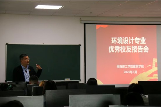 随后,深耕园林市政与建筑领域的张彬彬校友,从行业转型的角度提出“破局四策”。他指出,面对当前建筑行业的下行压力,同学们应积极开拓私宅设计等新兴市场,同时注重学历提升、考取职业资格证书、学好英语、掌握金融知识,建立“逆商”——即逆向思维能力。“面对一件事,首先要想‘我怎么做才能跟别人不一样’。”