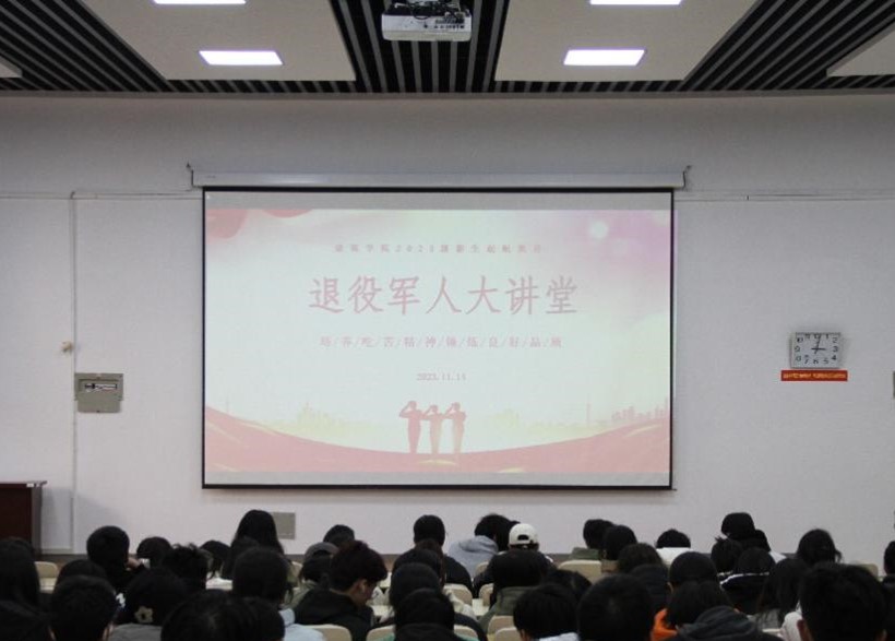 本网讯(学生记者/贾欣豪)志存高远砺青春,参军报国立伟业。为深入贯彻落实习近平强军思想,进一步激发学生的参军报国热情,11月14日,我院于7阶101教室举办新生起航教育特色活动之“退役军人大讲堂”。来自我院20级、23级专升本专业的5名退役军人到场宣讲,我院23级新生参加。