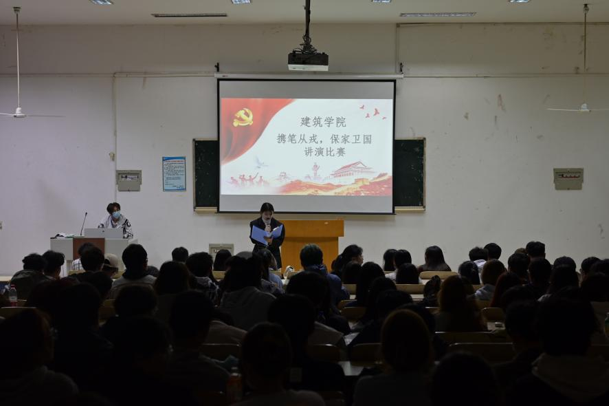 本网讯(学生记者/李春甫)为增强大学生国防观念,激发同学们携笔从戎的积极性,4月2日晚19点,建筑学院于7教101阶梯教室举办“携笔从戎,保家卫国”演讲大赛,我院学生踊跃参赛。