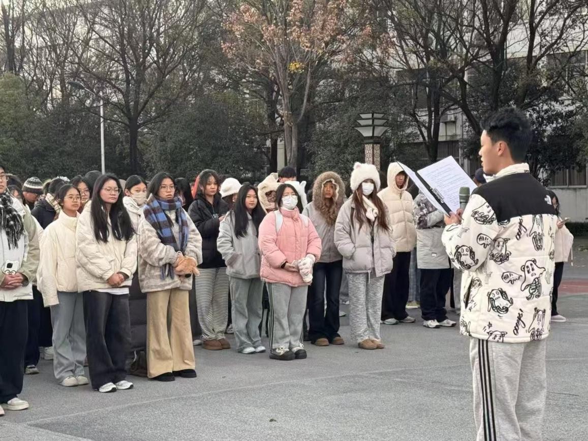 本网讯(学生记者/郑燚甜)为深入学习贯彻习近平法治思想,进一步推动宪法学习宣传教育走深走实,增强全院师生的宪法意识和法治观念,11月25日,我院于法治广场开展“以晨读为媒,传宪法之魂”晨读活动。25级全体学生参加。