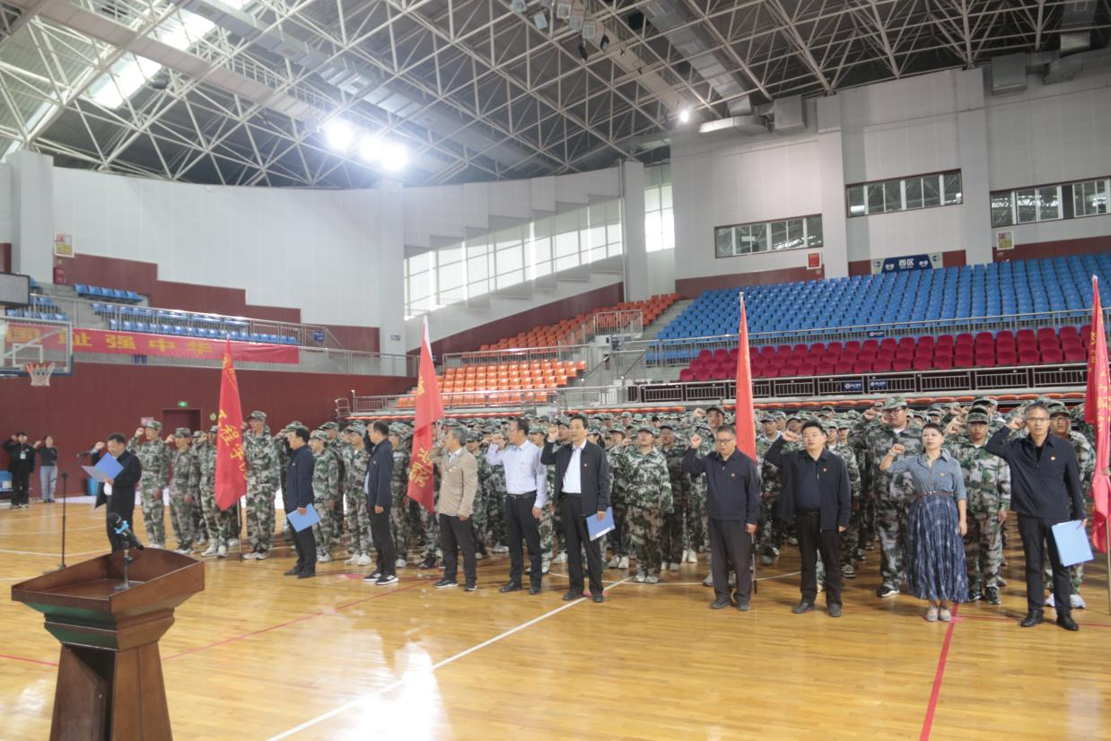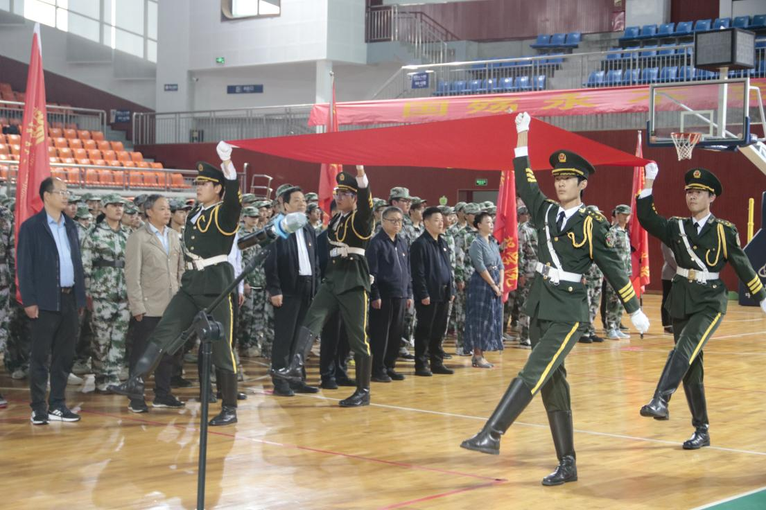 全体师生身着正装,整齐列队,肃立于体育馆二楼活动现场。活动在学生处处长郭兴华的主持下拉开帷幕。国旗护卫队步伐铿锵出旗,全体师生肃立高唱国歌,歌声激昂中饱含对祖国的热爱与敬意。